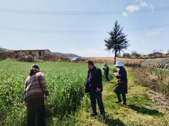 在众多饲草品种中,小黑麦凭借其高产、优质、适应性强等特性,成为省农科院热经所重点推广的品种之一。2024年10月23日,省农科院热经所科研团队在寻甸县塘子街道塘子社区小滑坡(海拔2079米)寻甸瑞阳养殖场开展小黑麦种植试验。该区域属于典型的高原山地气候,冬季寒冷、夏季温凉,生态环境较为复杂。面对这样的自然条件,科研团队充分发挥专业优势,从品种选择、播种时间、田间管理等环节入手,制定了科学详细的种植方案。在播种过程中,科研人员严格把控播种深度、密度,确保种子能够在适宜的环境中发芽生长;在生长期间,密切关注小黑麦的生长状况,及时进行施肥、病虫害防治等田间管理工作,为小黑麦的健康生长提供了有力保障。